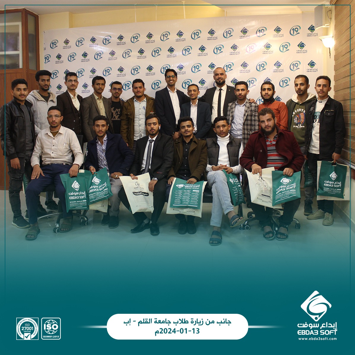 زار مقر شركة ابداع سوفت يوم أمس السبت الموافق 13 يناير 2024 عدد من طلاب قسم نظم المعلومات بجامعة القلم محافظة – إب