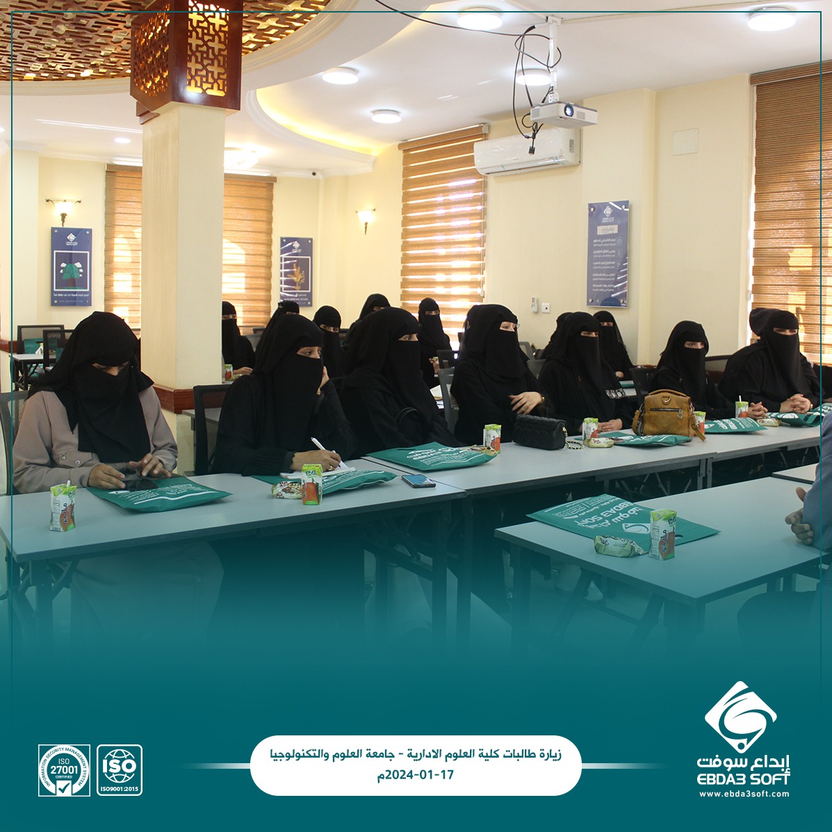 زار مقر شركة ابداع سوفت يومنا هذا الأربعاء الموافق 17 يناير 2024 عدد من طالبات كلية العلوم الإدارية – جامعة العلوم والتكنولوجيا.