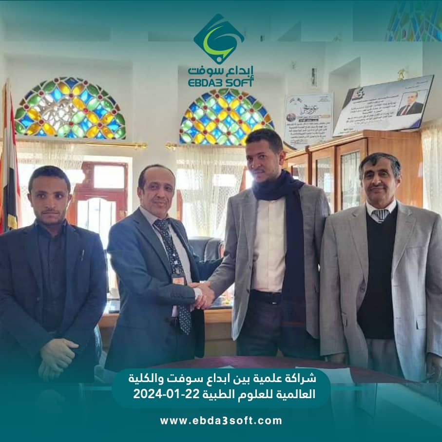 توقيع اتفاقية شراكة علمية بين إبداع سوفت والكلية العالمية للعلوم الطبية والتقنية