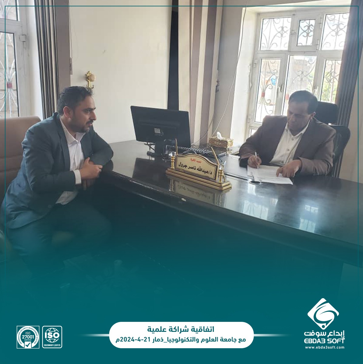 توقيع اتفاقية شراكة علمية وتدريب لأنظمة ابداع بجامعة العلوم والتكنولوجيا – ذمار