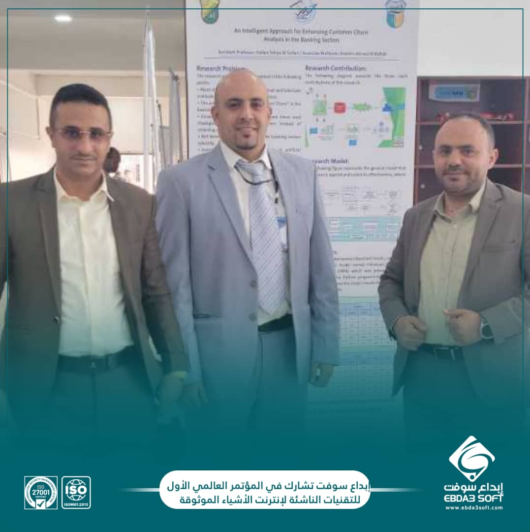 حيث قدّم د.سلطان يحيى السلطان أحد محكمي الأبحاث العلمية في المؤتمر وعضو فريق إبداع سوفت، ملخصًا علميًا عبر بوستر يوضح آلية العمل باستخدام الذكاء الاصطناعي لمعالجة ظاهرة تسرّب العملاء.