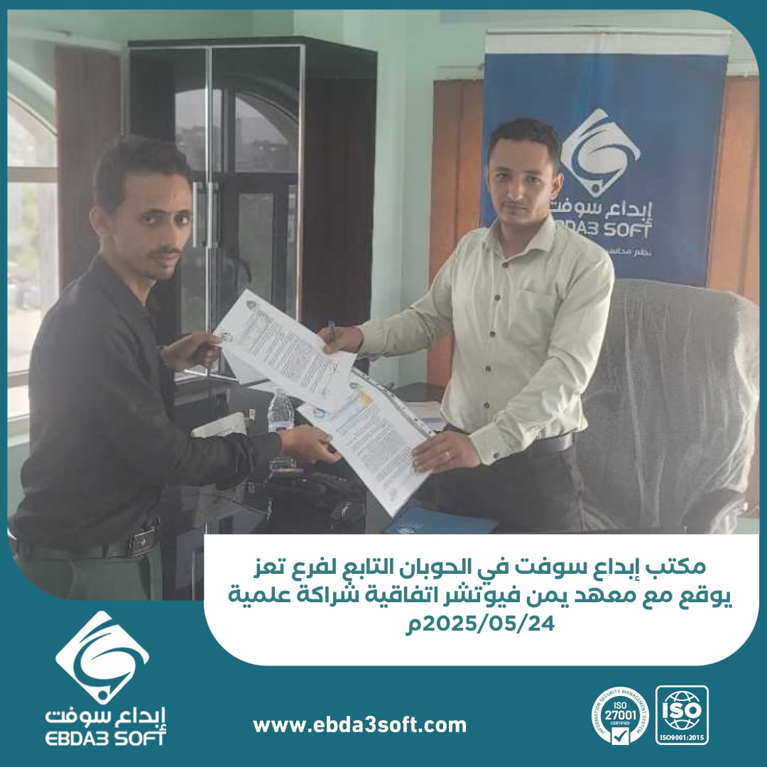 مكتب إبداع سوفت في الحوبان التابع لفرع تعز يوقع مع معهد يمن فيوتشر اتفاقية شراكة علمية