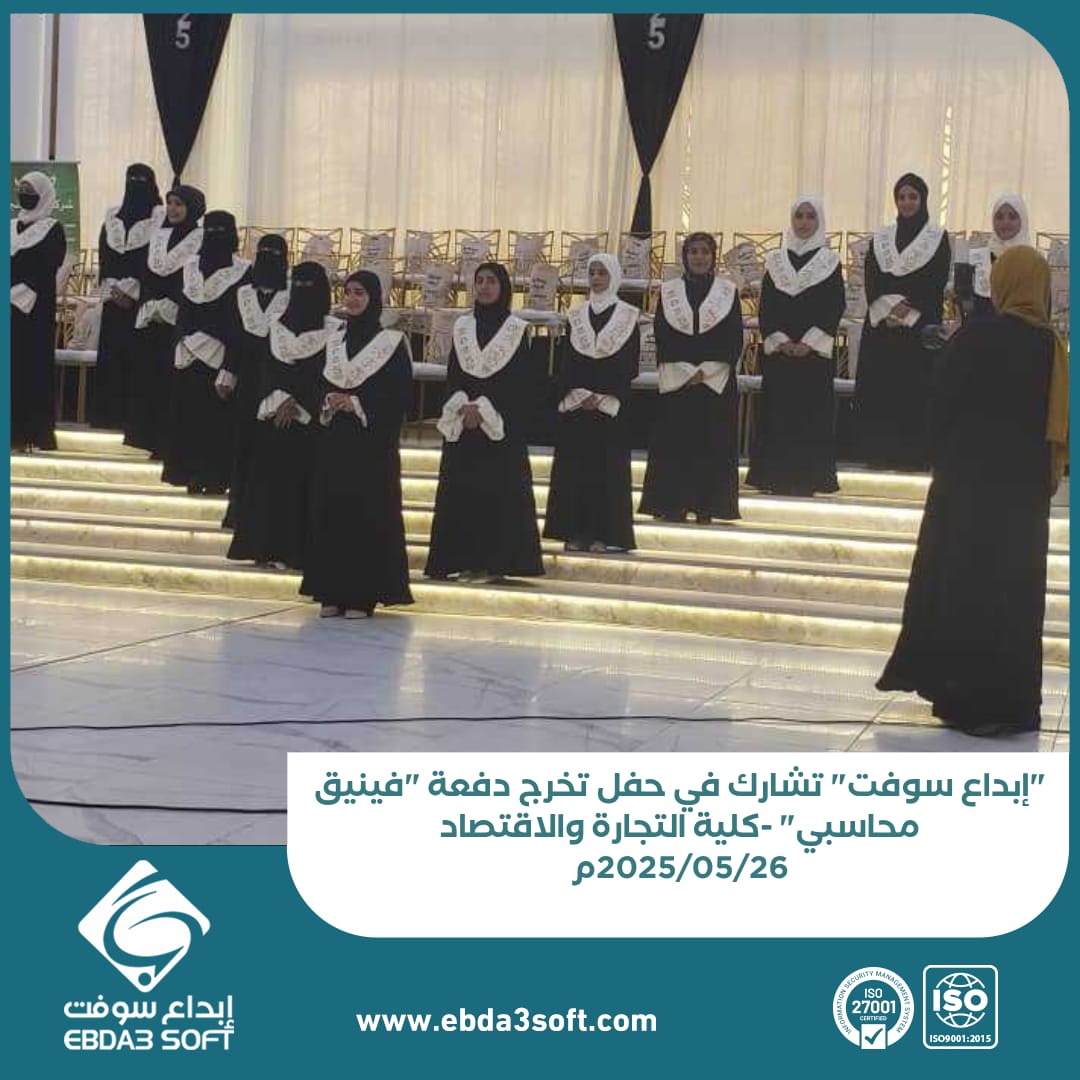 في إطار دعمها المتواصل للمبادرات التعليمية، شاركت شركة إبداع سوفت للأنظمة الخاصة في حفل تخرج دفعة “فينيق محاسبي” من طالبات قسم المحاسبة – كلية التجارة والاقتصاد، والذي أُقيم في قاعة القصر الأبيض بحي الجراف، بمشاركة 63 خريجة.