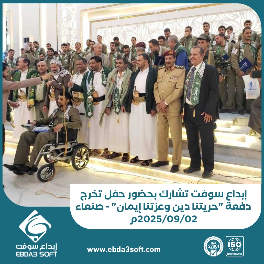 شاركت إبداع سوفت للأنظمة الخاصة في حفل تخرج دفعة “حريتنا دين وعزتنا إيمان”، الذي أقيم في صالة القصر الأبيض بمنطقة الجراف، بمشاركة 110 طالباً من مختلف التخصصات.