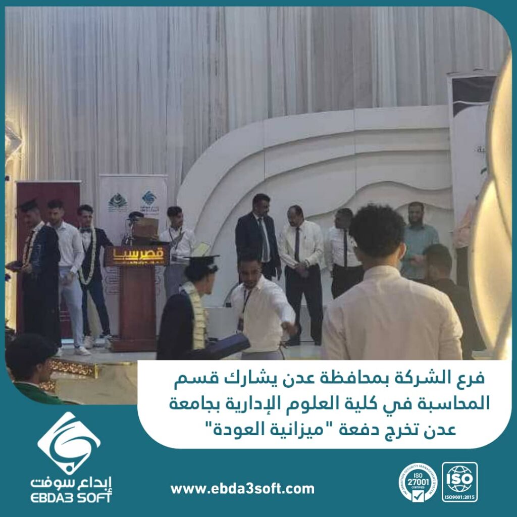 شاركت ابداع سوفت عبر فرعها بمحافظة عدن احتفالية تخرج الدفعة السادسة والعشرون لقسم المحاسبة بكلية العلوم الإدارية بجامعة عدن وسط مشاركة فاعلة للاكاديمين وأولياء أمور الخريجين والشخصيات المجتمعية البارزة احتفاء بأبنائنا الطلاب والطالبات وفرحتهم الغامرة ببدء مرحلة جديدة من حياتهم المهنية مع اختتام مرحلة أكاديمية كانت حافلة بالجد والاجتهاد والمثابرة.